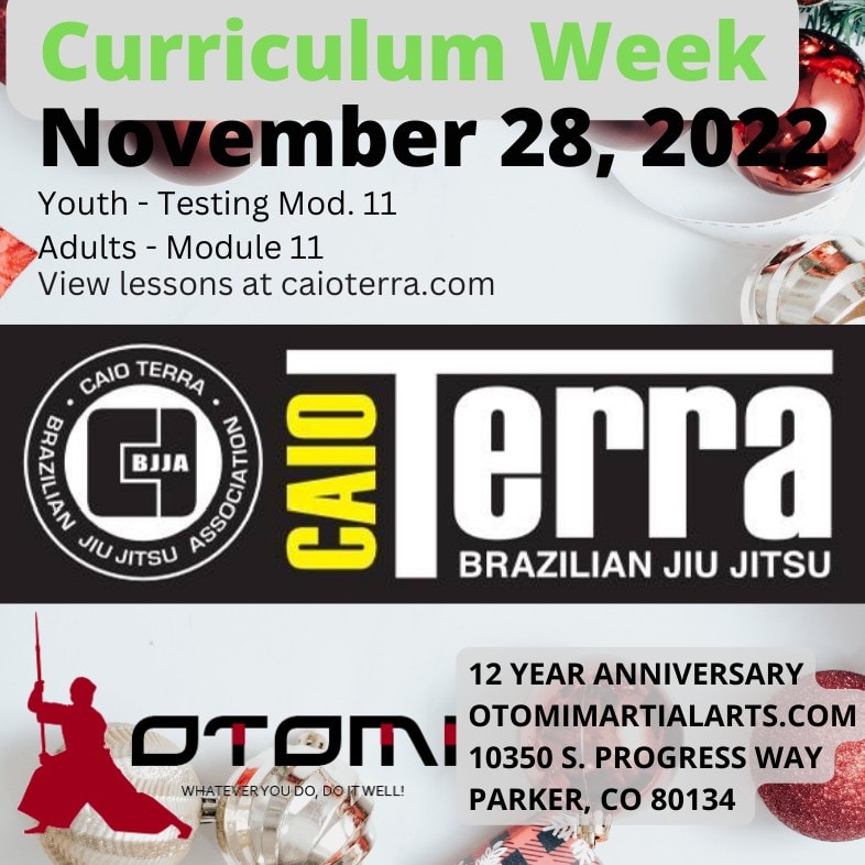 Testing week for our youth! Adulta will focus on Module 11 which focuses on Closed Guard. Intro classes will focus on side mount options as well.