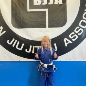 Meet Brooklyn, a young and energetic member of our BJJ family, who has recently joined our mats alongside her brother, Hudson, and their dad, Kirk. We couldn’t be more excited to welcome them to our tight-knit community, and we can’t wait to witness their incredible journey in the world of Brazilian Jiu-Jitsu.